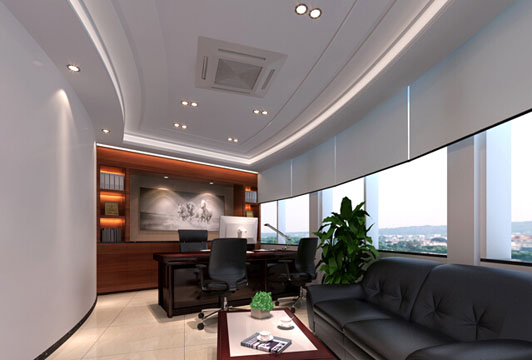 眾所周知,行政樓辦公室裝修裝飾是辦公樓裝飾里的其中一種類型。下圖為北京某高級行政樓辦公室裝修裝飾經理室效果圖,淺灰色的窗簾裝飾展現嚴謹辦公的理念,高級行政樓辦公室裝修裝飾,行政樓經理辦公室裝修裝飾采用黑色的辦公家具,表現沉穩、包容、刻苦的正向形象。